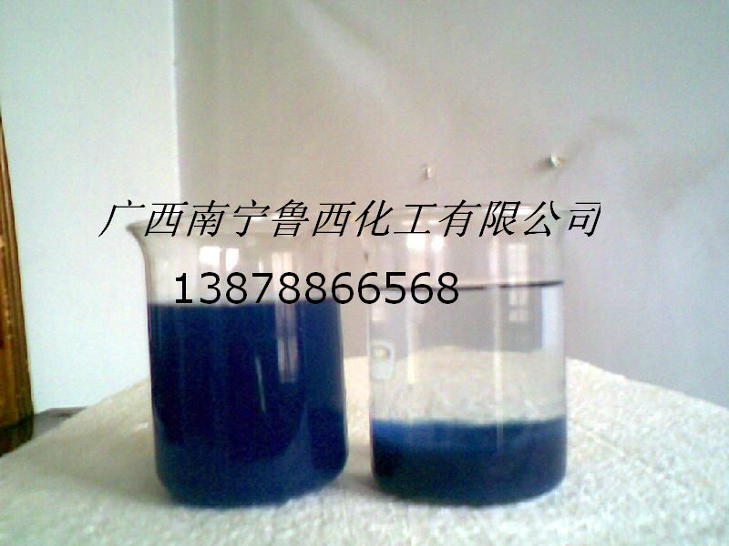 使用方法:用水将本品稀释3-10倍,然后加入到废水中,搅拌数分钟后,絮体进行沉降或气浮,即可除去废水的颜色得清夜。当废水的色度、CODcr较高时,为了降低处理成本,可与聚合氯化铝、或净水灵混凝剂搭配使用,但应先加入混凝剂搅拌数分钟后,再加入脱色絮凝剂。